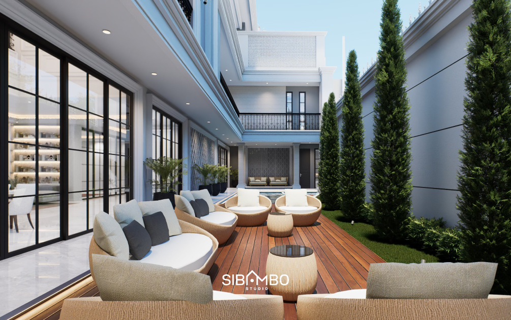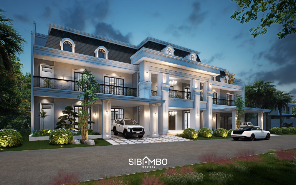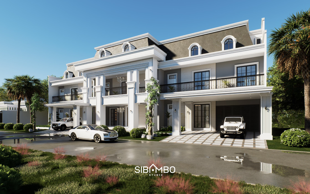 Gaya modern klasik dipilih karena menghadirkan kesan timeless dan berkelas, tanpa kehilangan sentuhan kehangatan keluarga. Rumah ini dirancang layaknya istana, namun tetap ramah dan humanis. Proporsi ruang diperhatikan secara matang agar setiap anggota keluarga memiliki privasi, sekaligus tetap terhubung dalam ruang komunal yang luas.